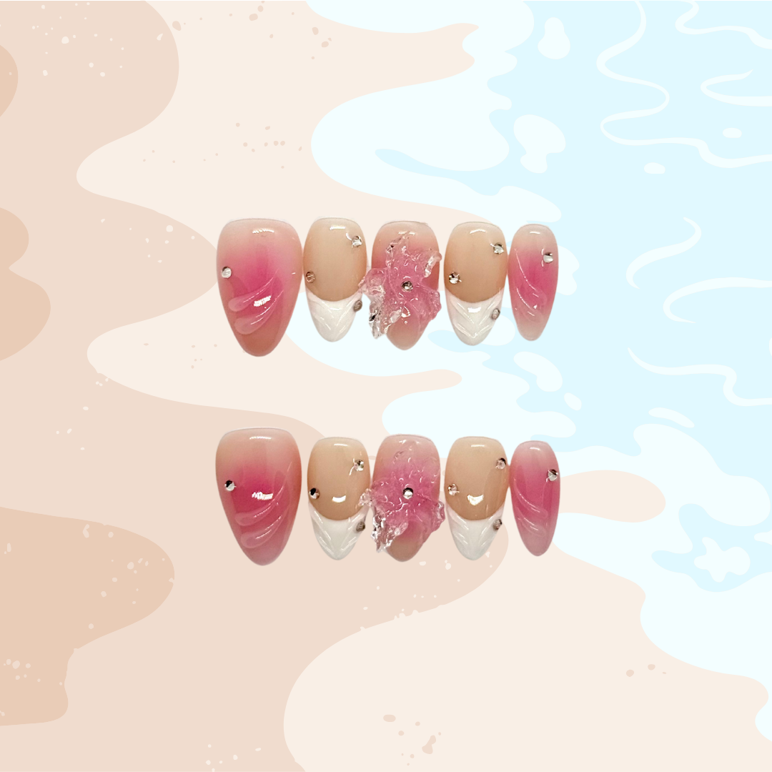 Pink Affair is a romantic press-on nail set that captures soft elegance with a hint of summer charm. Featuring a delicate pink-nude base, dainty floral accents, and classic French tips, it radiates a light, breezy vibe perfect for sunny days and seaside strolls. Subtle yet graceful, this set is versatile enough for everyday wear while still making a statement at summer outings, beach getaways, or special occasions. With Pink Affair, your nails bloom with effortless beauty and a touch of vacation glow.